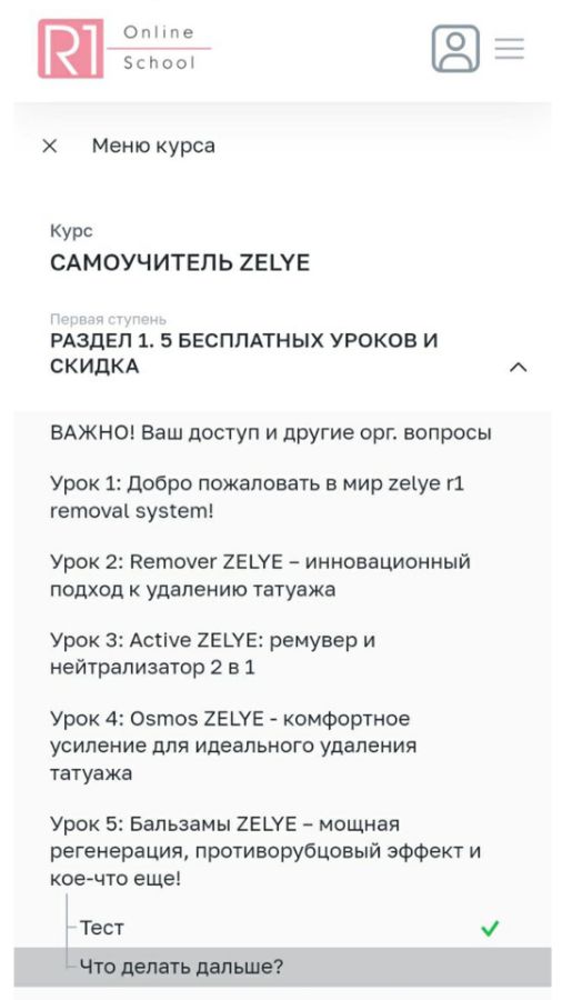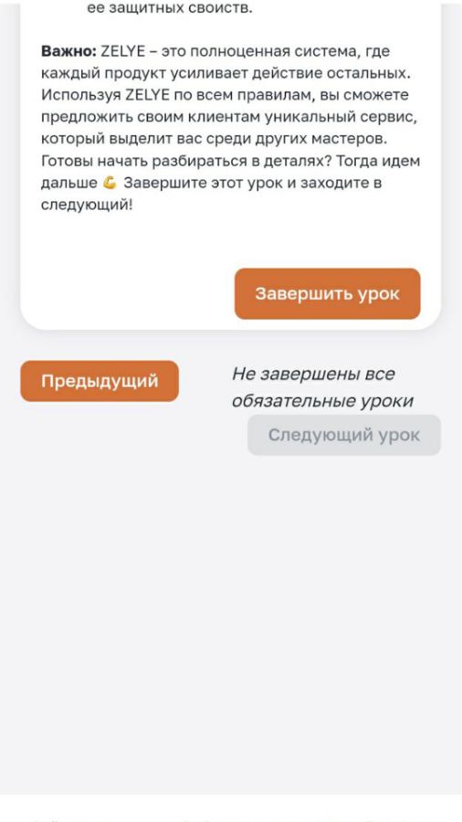 Чтобы следующий урок стал доступен, необходимо завершить текущий урок. Для этого нажмите на кнопку в правом нижнем углу урока: