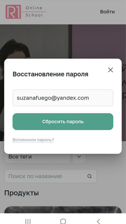 1. Под кнопкой ВОЙТИ нажмите на "Забыли пароль?" и в окне напишите email, на котором вы зарегистрированы в школе. Нажмите на кнопку "Сбросить пароль":